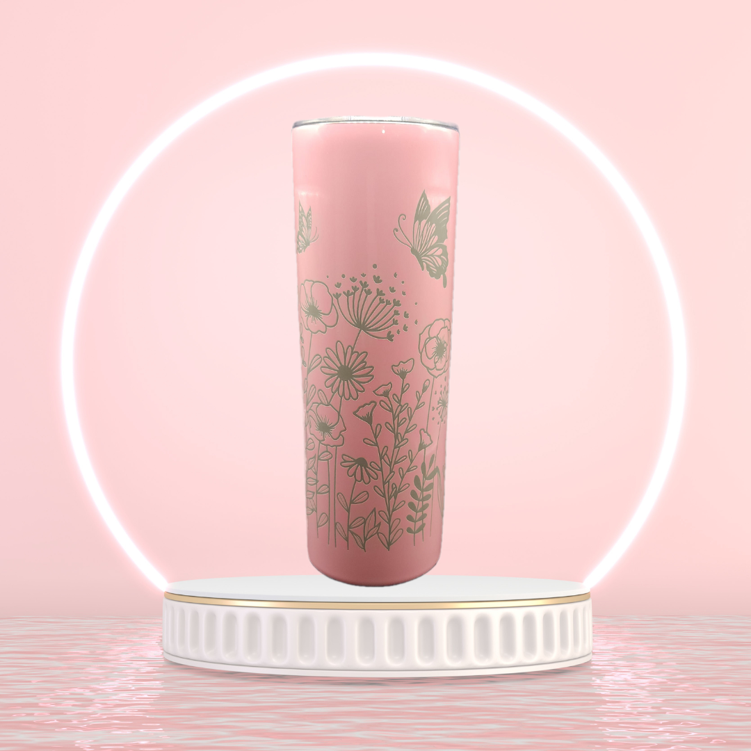 These skinny tumblers are laser engraved with beautiful flowers and butterflies! They make a great gift for any occasion, even if it's just shopping therapy!